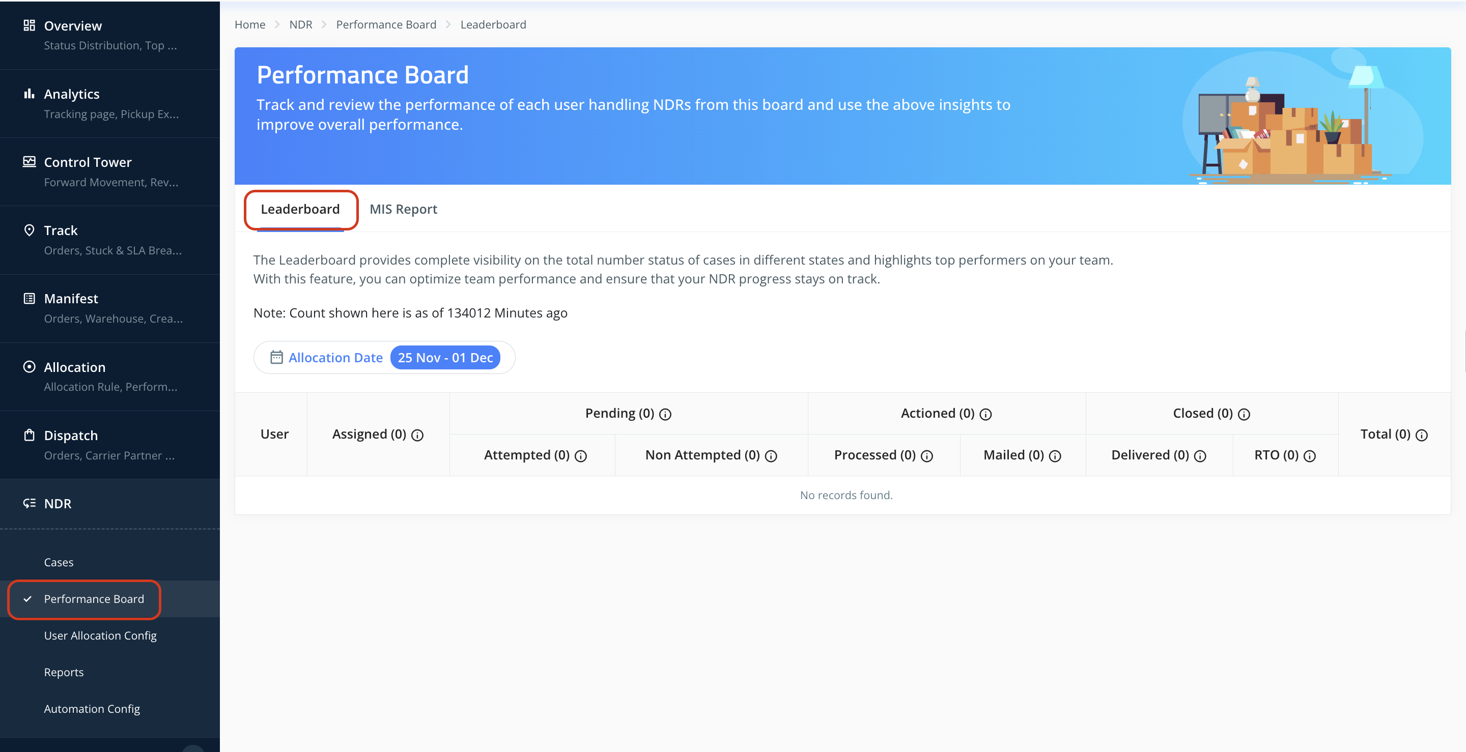 The Performance Board gives you a detailed view of how each sub-user is managing their assigned NDR cases.