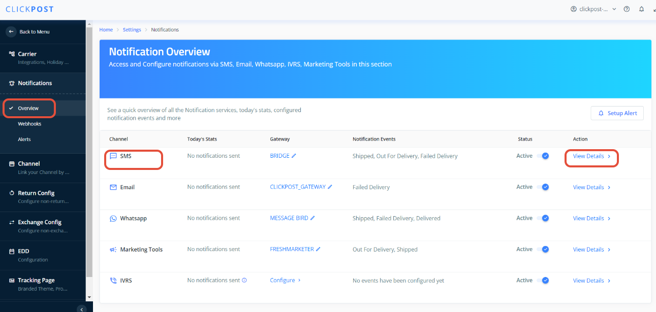 - Account(s) : Courier Partner accounts for which you want to enable the SMSs
