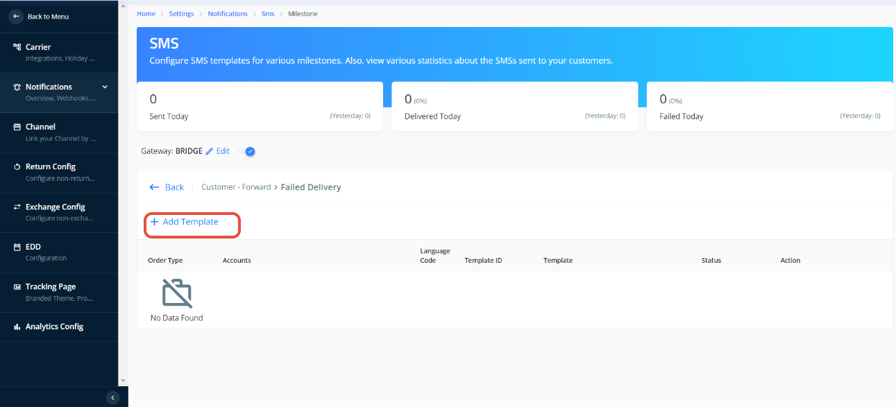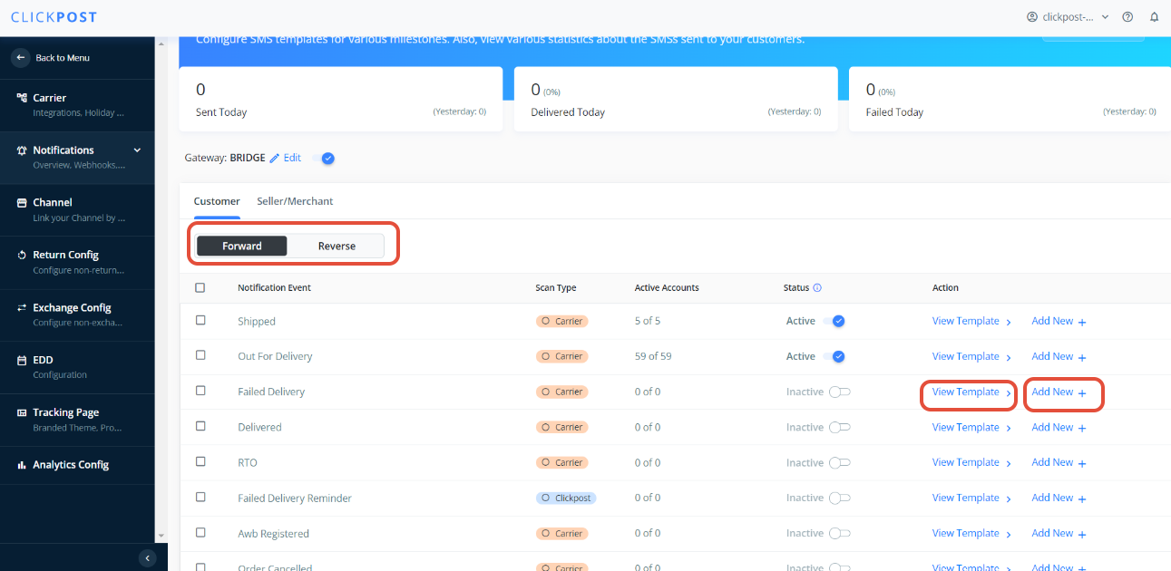 - Go to any Milestone you want to configure template for, Click on the View Template (Also you can select the flow (Forward or reverse) from top to configure notification for specific flow)