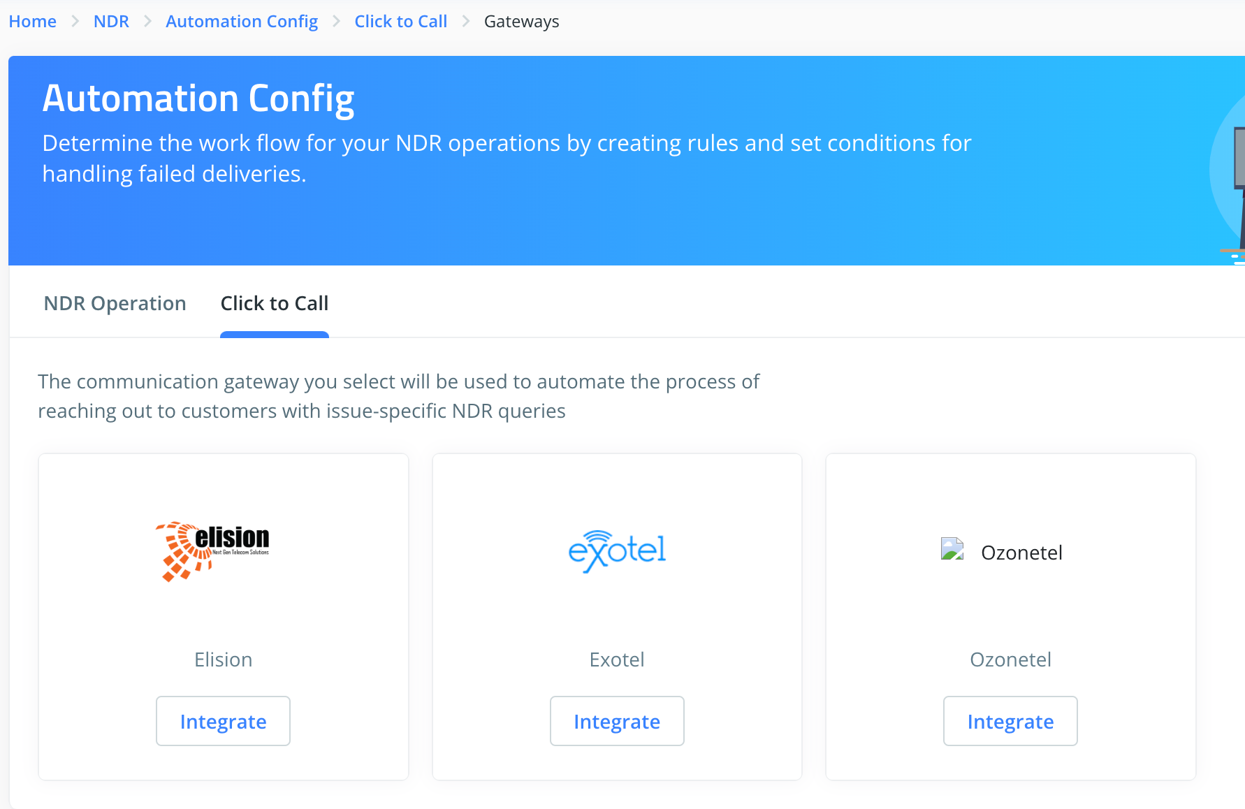 Dashboard → NDR → Automation Config → Click to Call