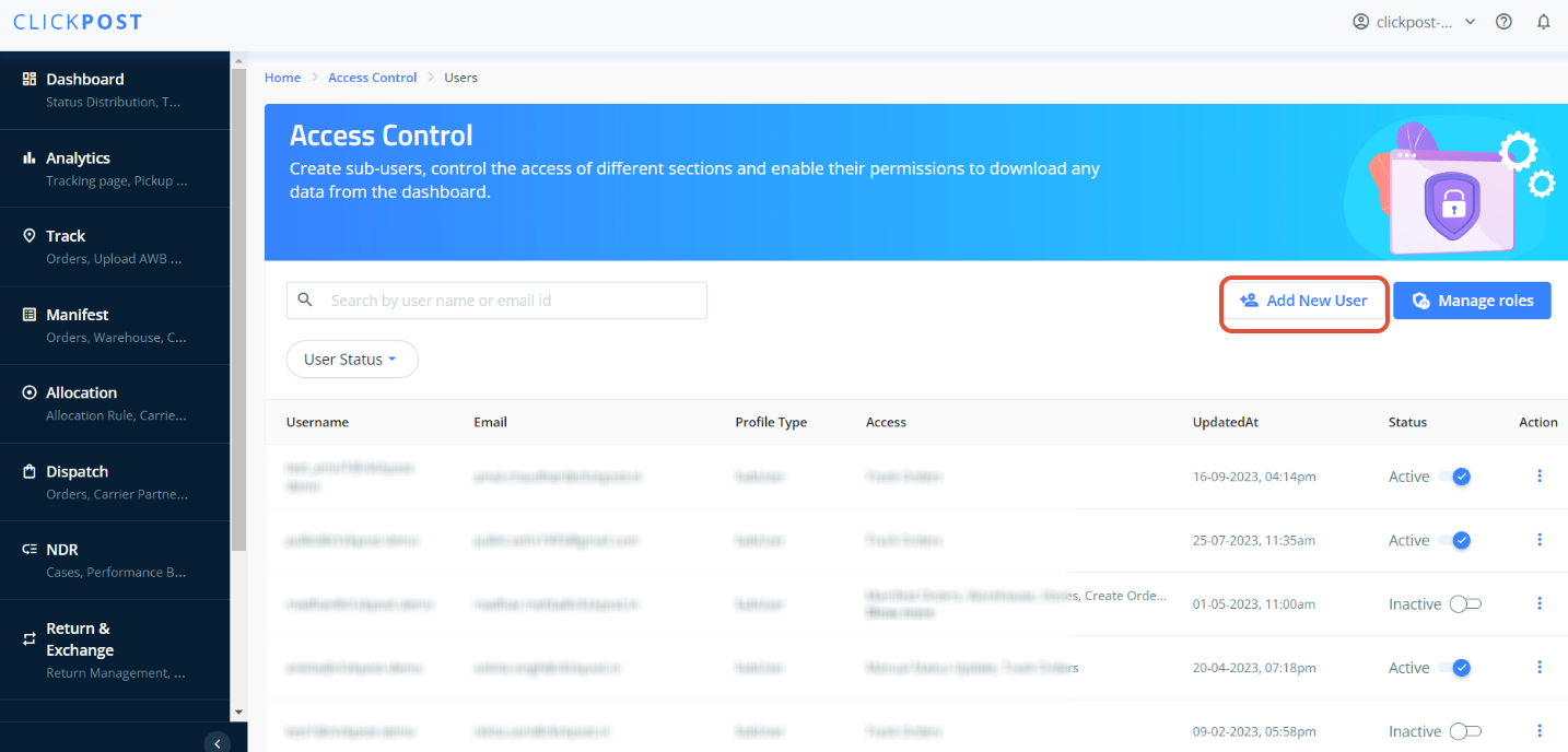 2. Add a sub-user for IVRS. To create sub-user specific for IVRS on Clickpost dashboard so that every action on the NDR case an be captured on this account. please follow the steps provided in the link below to create subuser