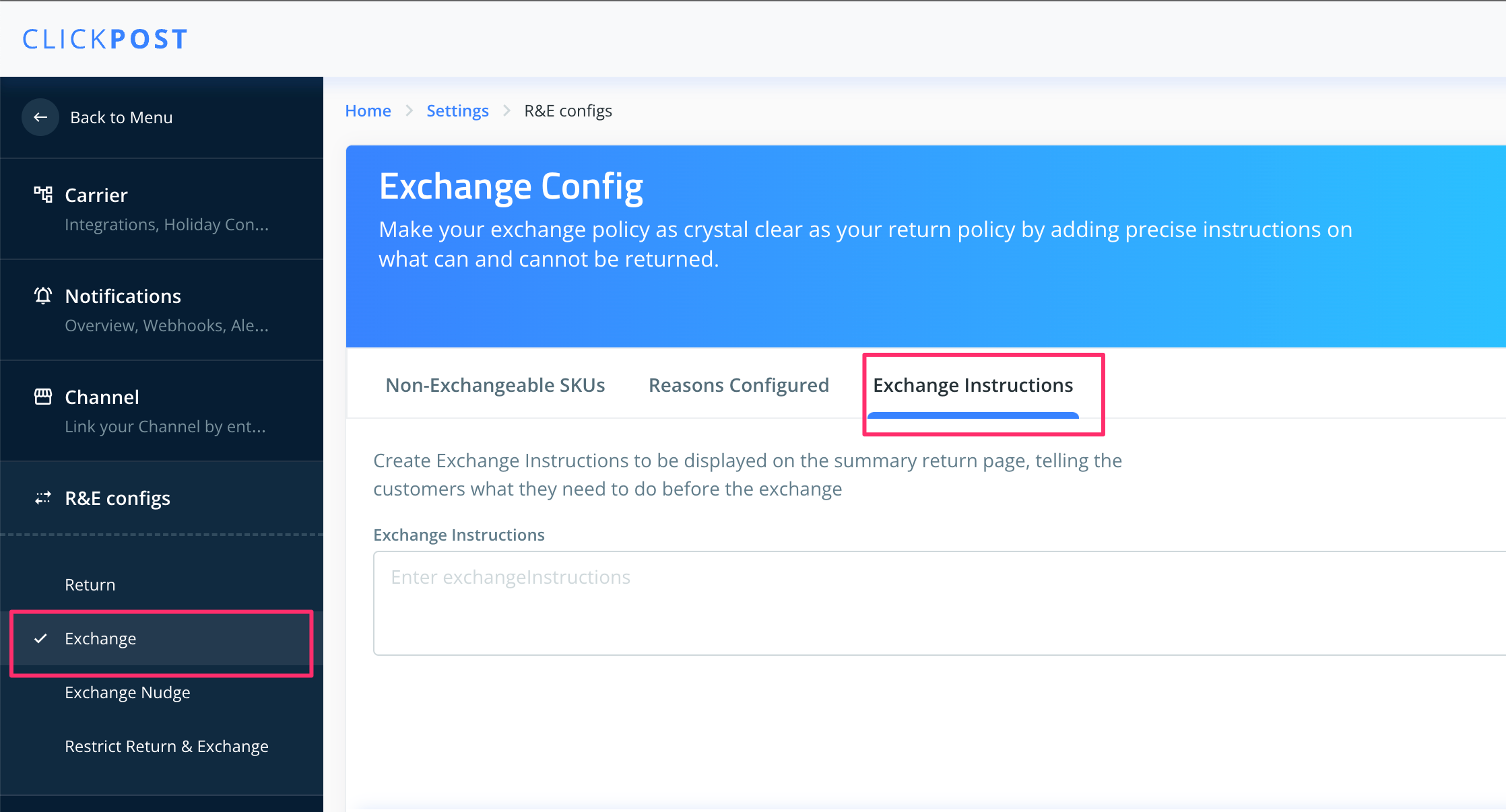 Steps to addexchange instructions on the customer facing UI: