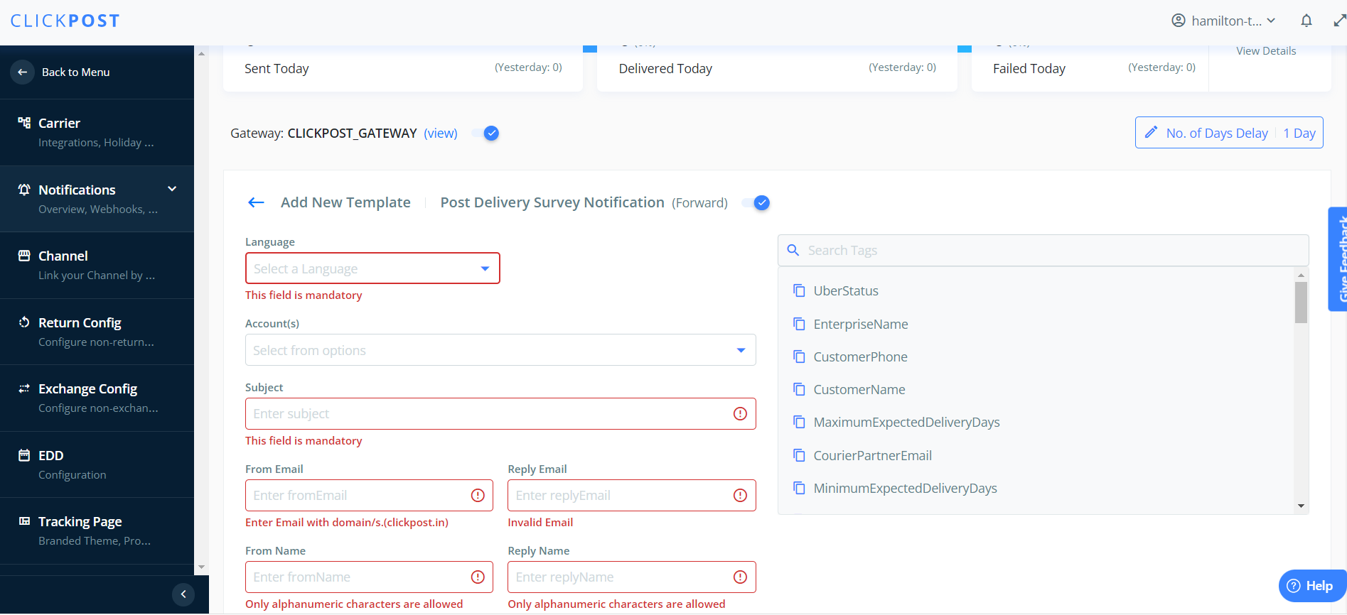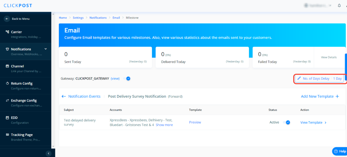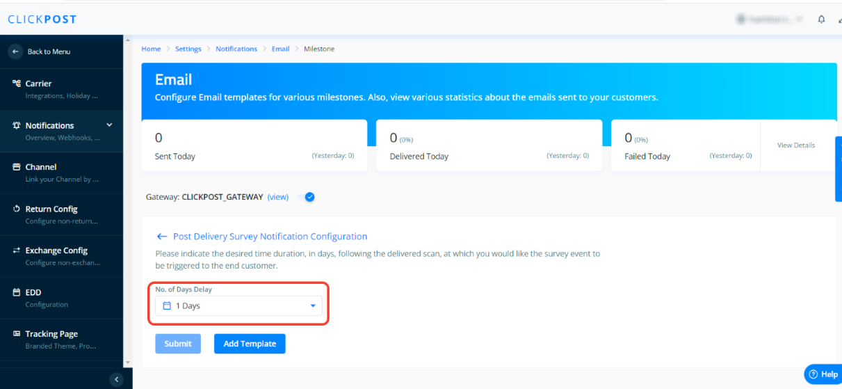 Then click on “No of Days delay” to configure the days after which you want to trigger the notification post successful delivery.