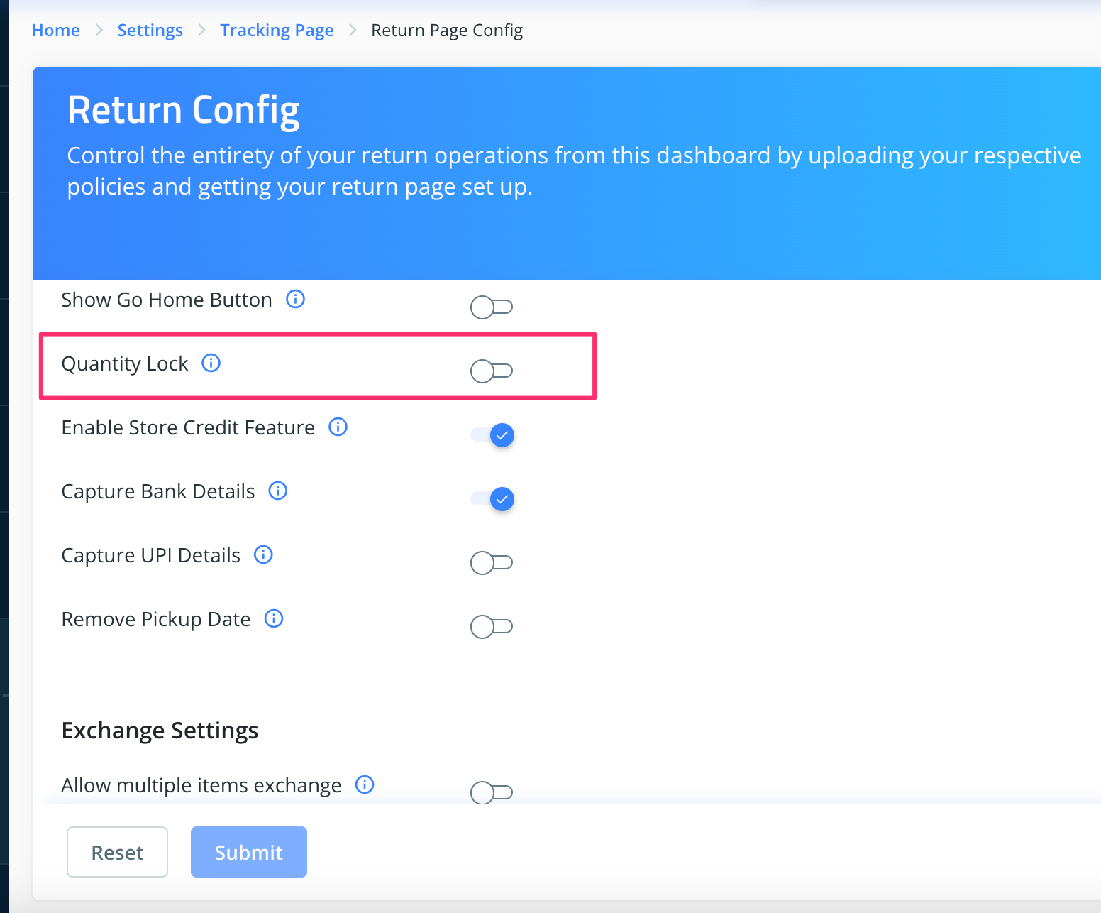 3. Enable the toggle corresponding to Enable quantity lock and click on "submit".