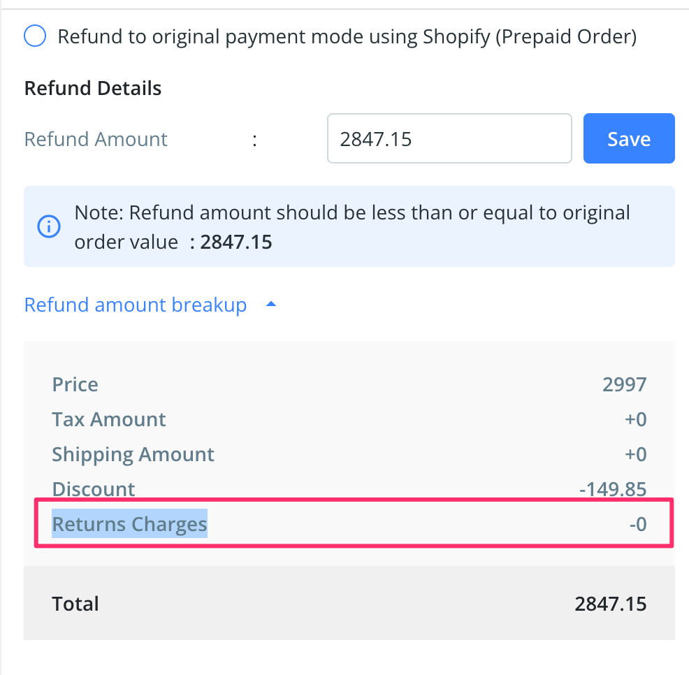 Use case: When providing refund to an end customer for returns, Enterprices may have to deduct refund charges.