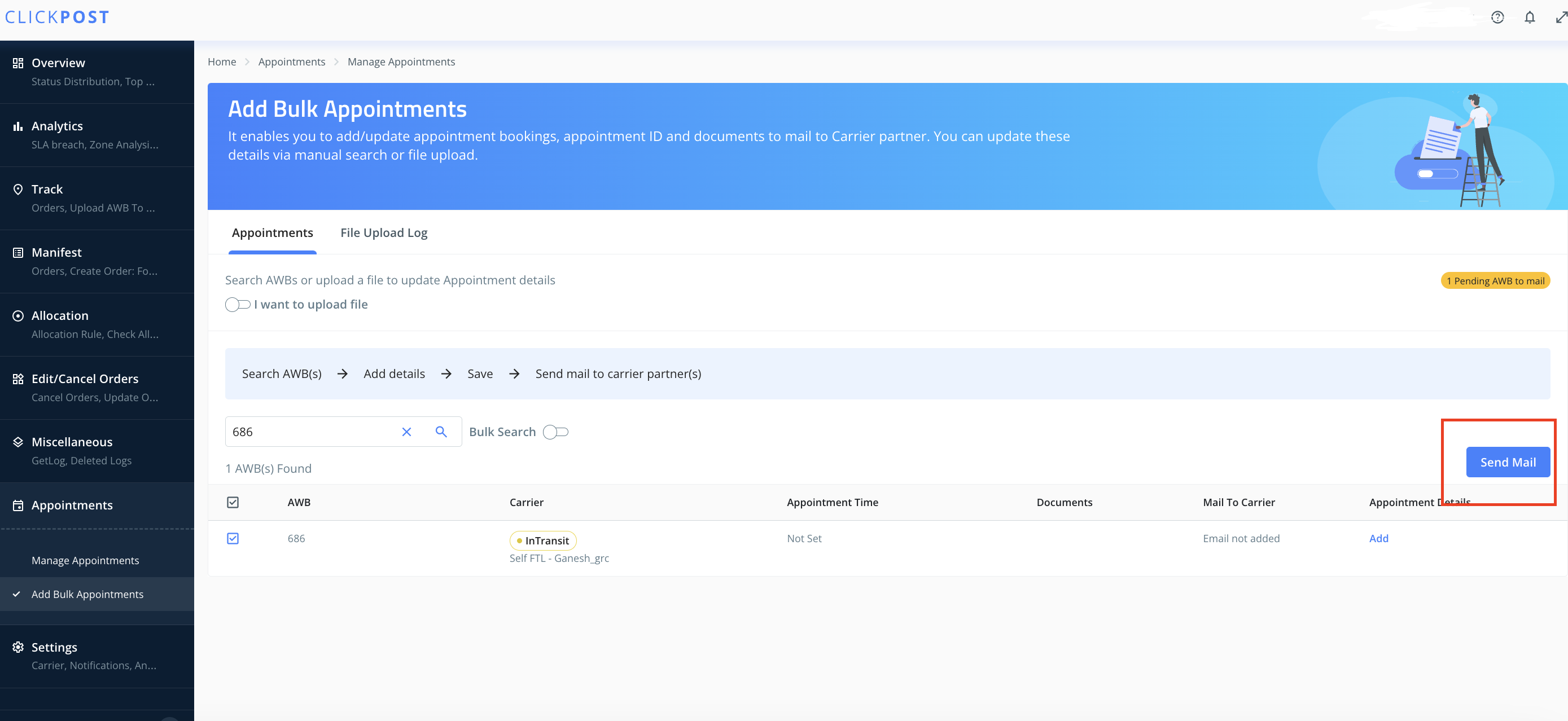Setting up Appointment date and time for AWBs in ClickPost