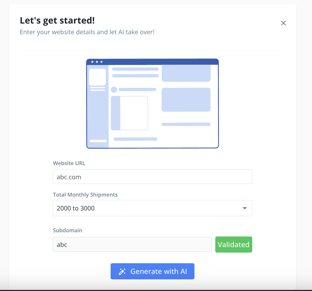 We offer a feature that allows you to create a tracking page by simply providing your website URL and domain. Using AI capabilities, the tracking page will be generated within 5 minutes.