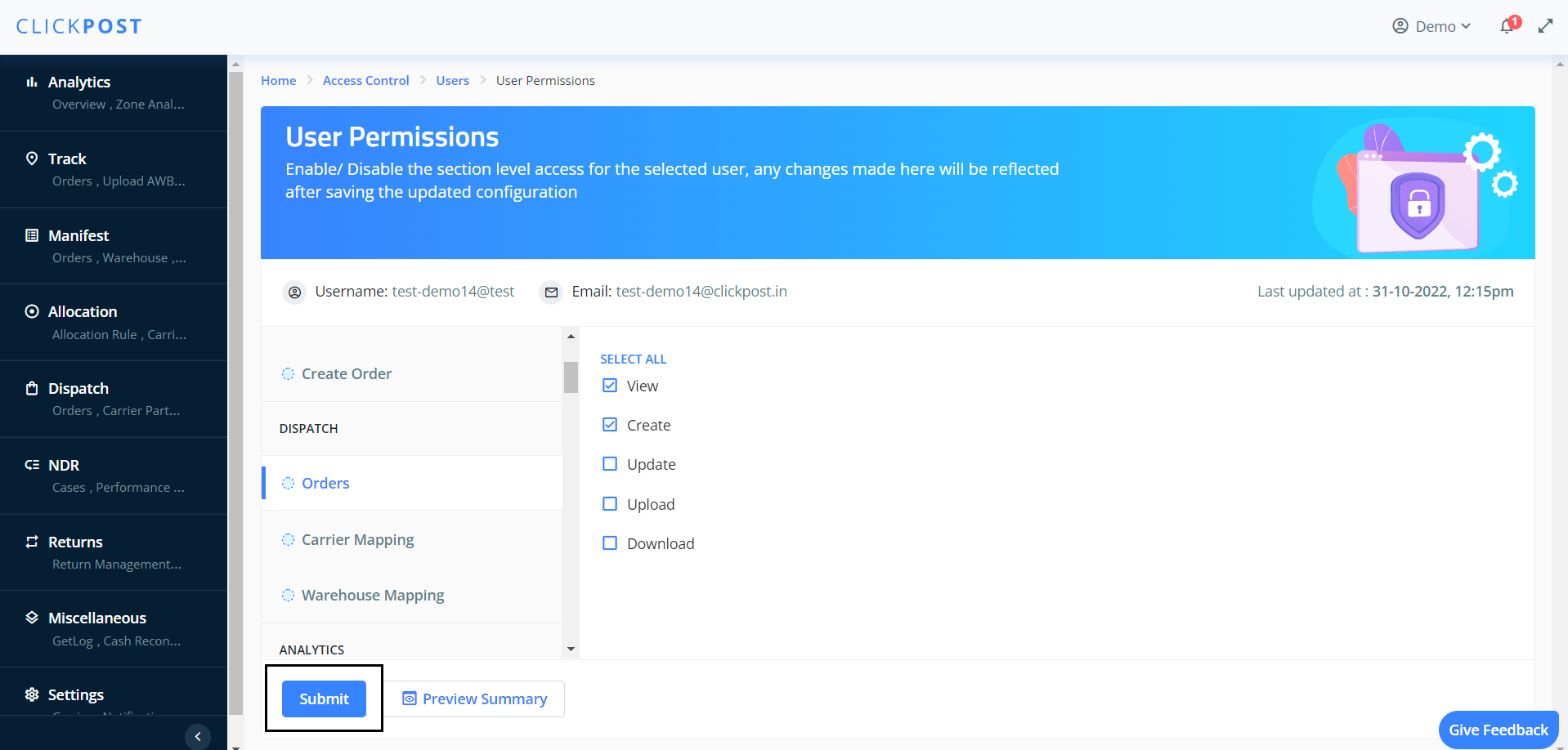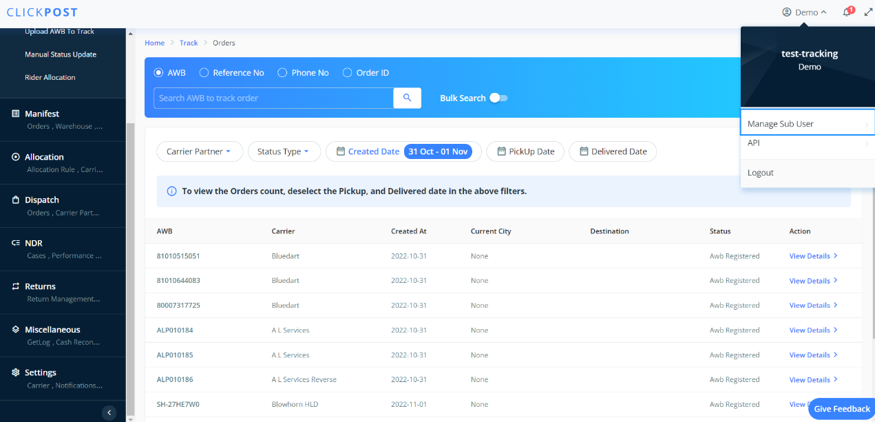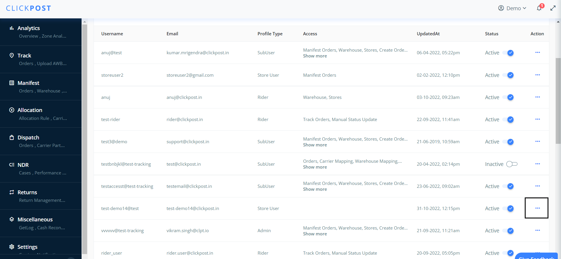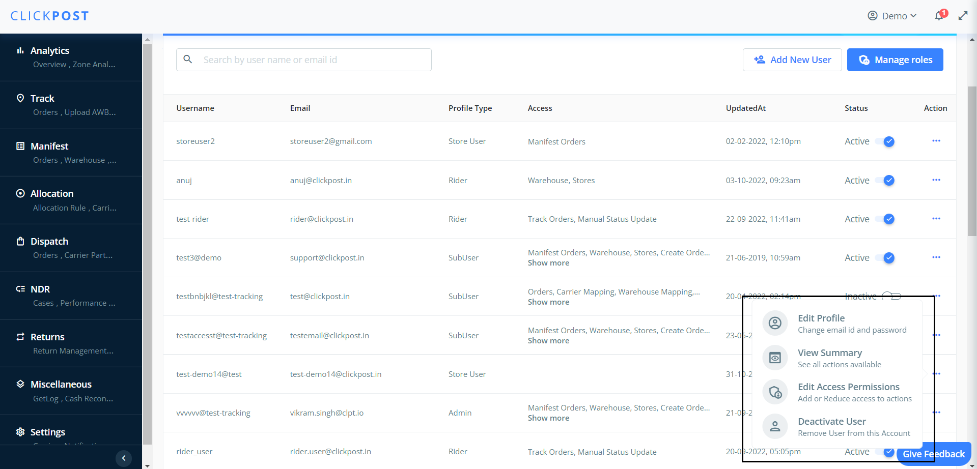 To Edit existing Sub-User account on Clickpost: