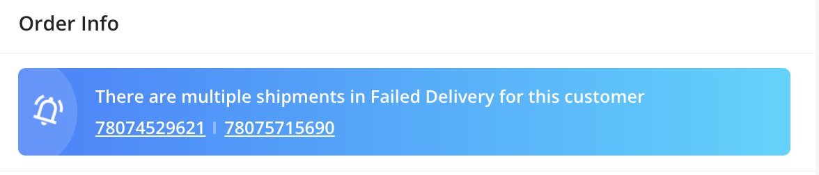If a customer has multiple failed deliveries, all related shipments are grouped together in a single detailed view.
