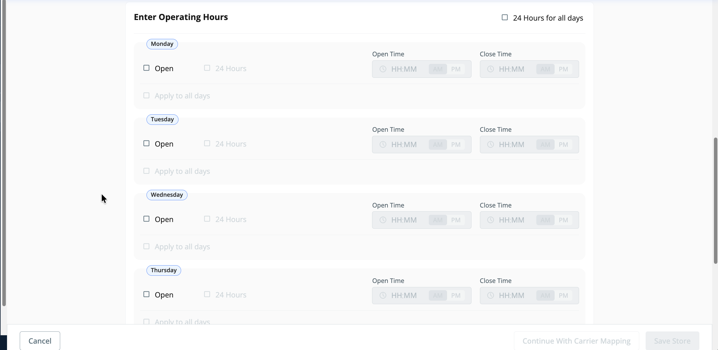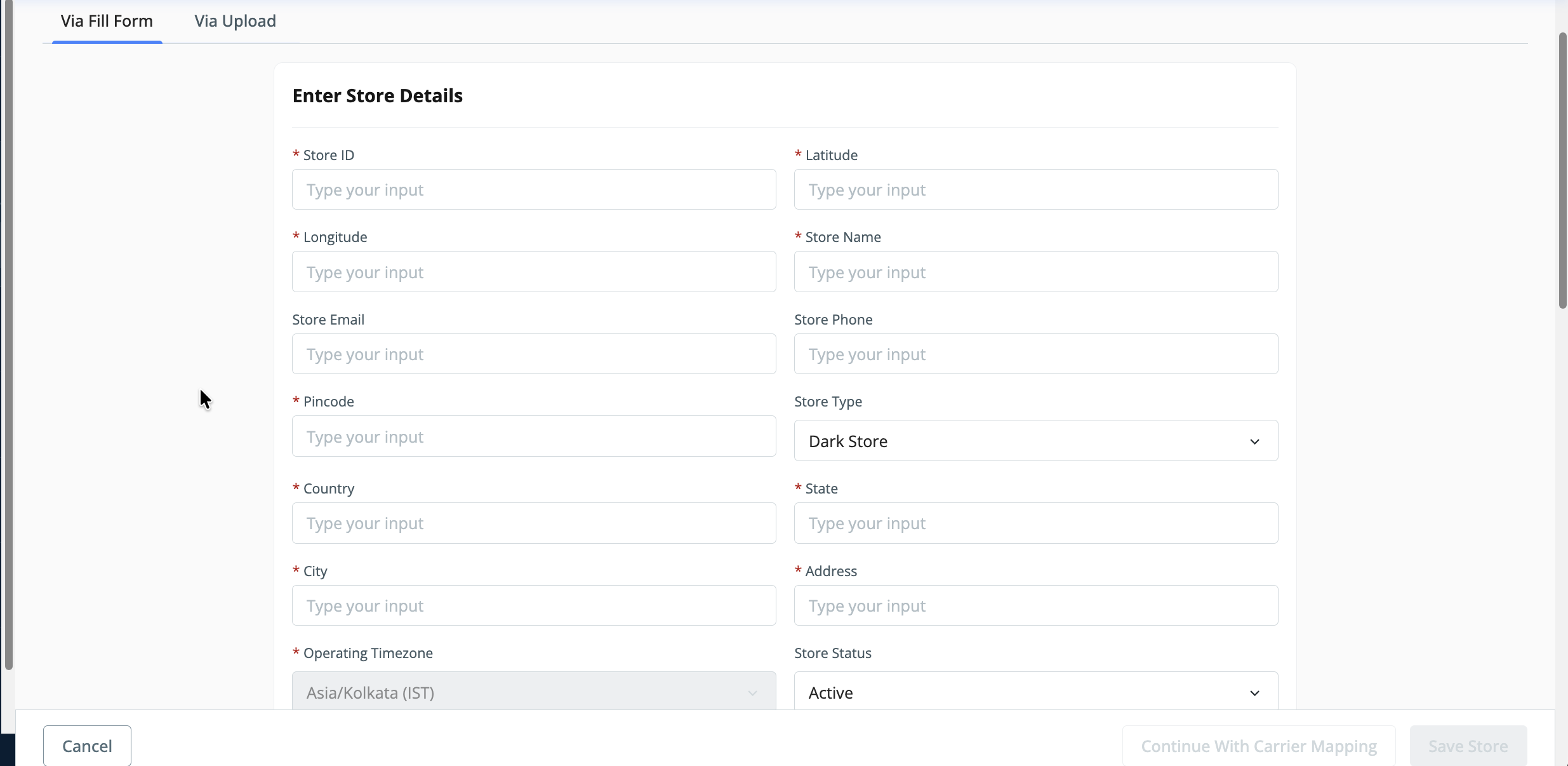 - Once you click "Add New Store", a form will open on the UI where you need to enter the store-level configuration details.