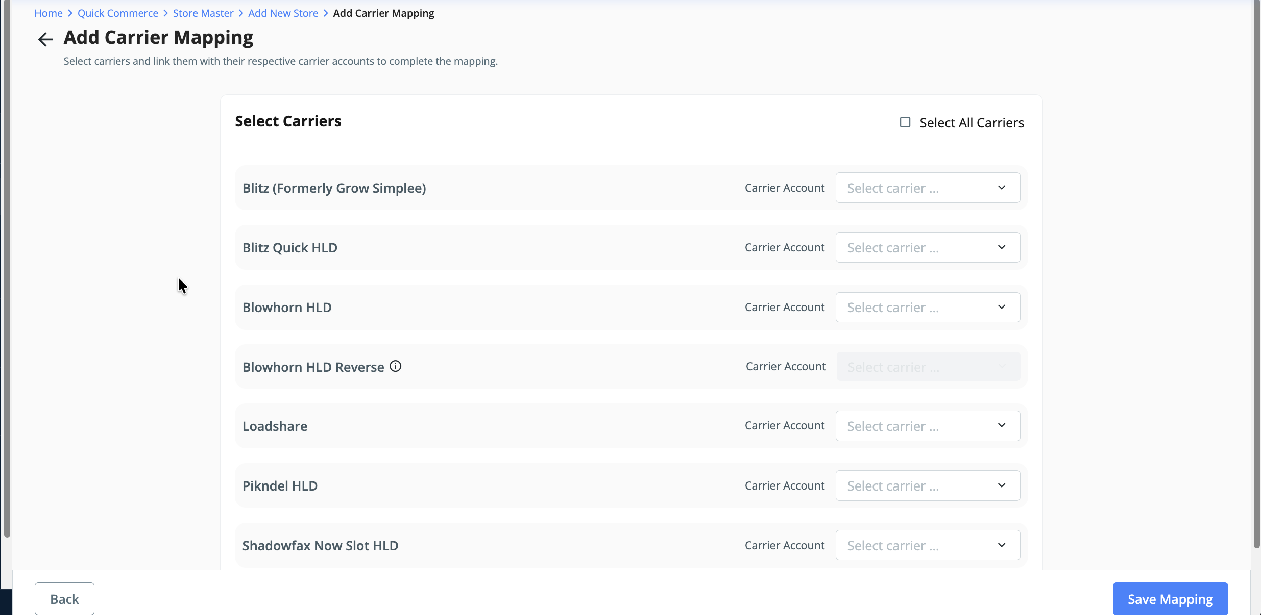 - In the Carrier Partner Mapping section, select the courier partners you want to associate with the configured store.