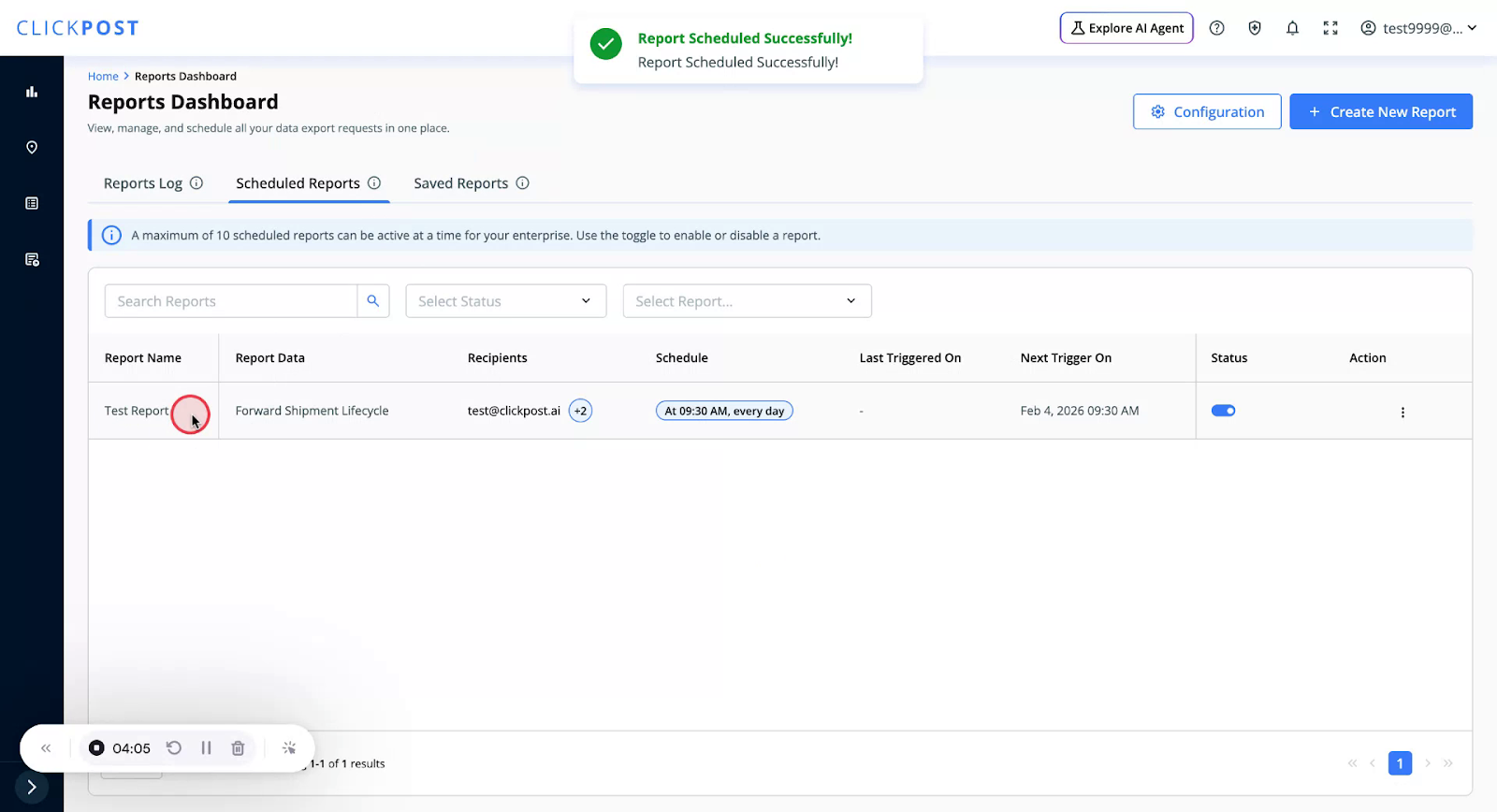 This report now appears under Scheduled Reports, where you can see the relevant details.