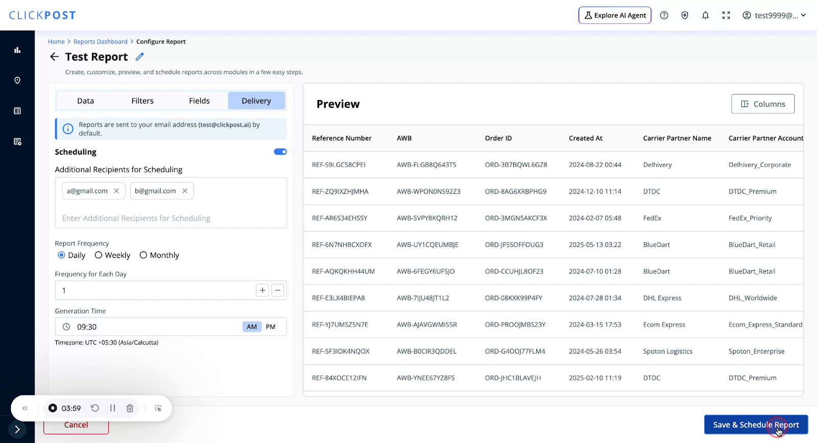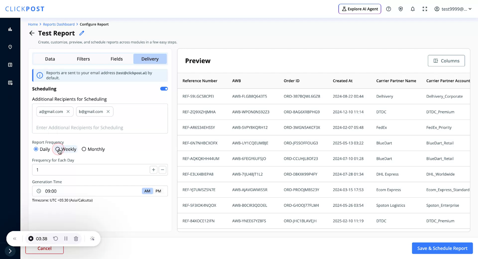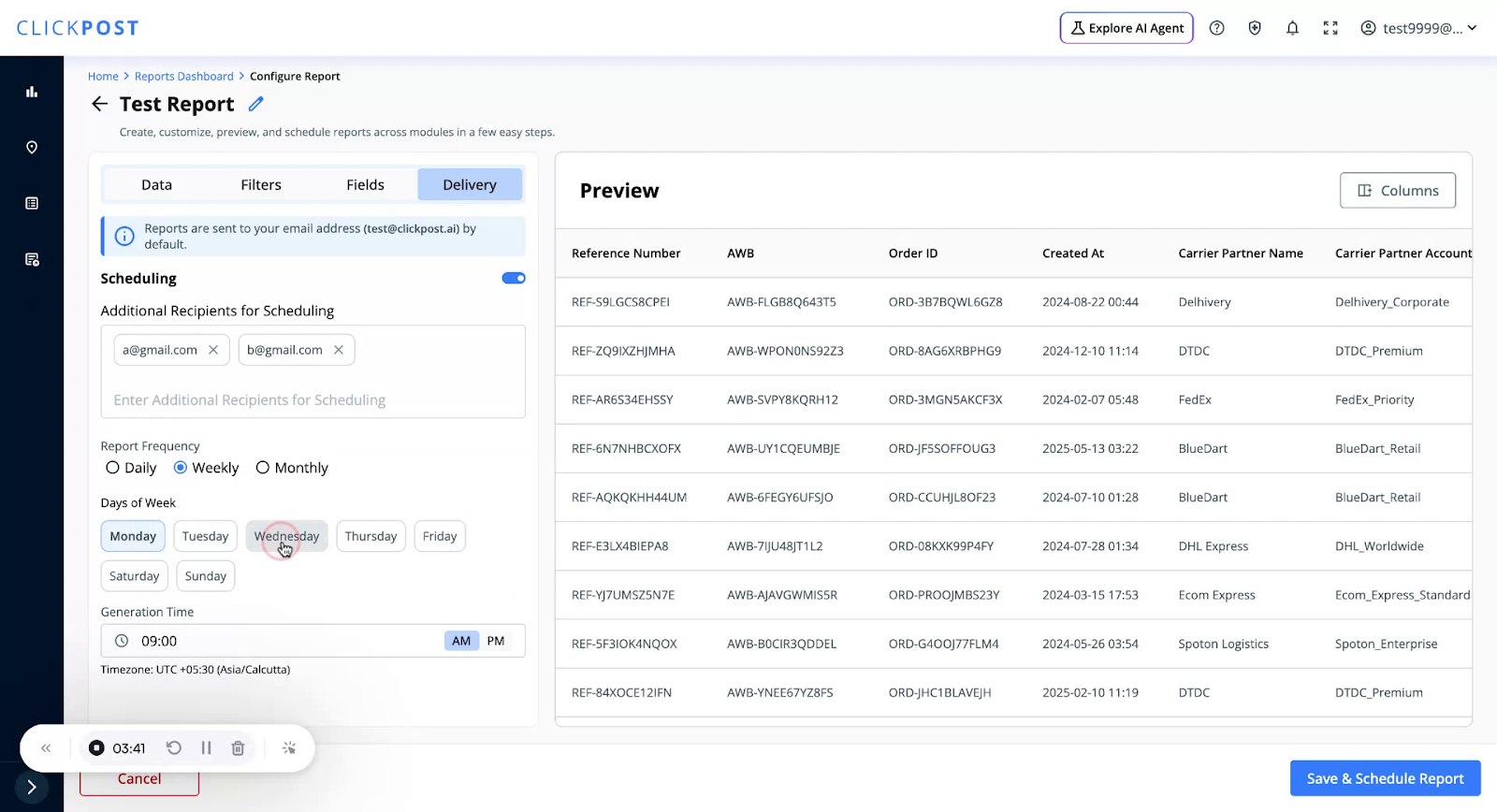 To send the report to additional email addresses, type the extra email IDs in the provided field.