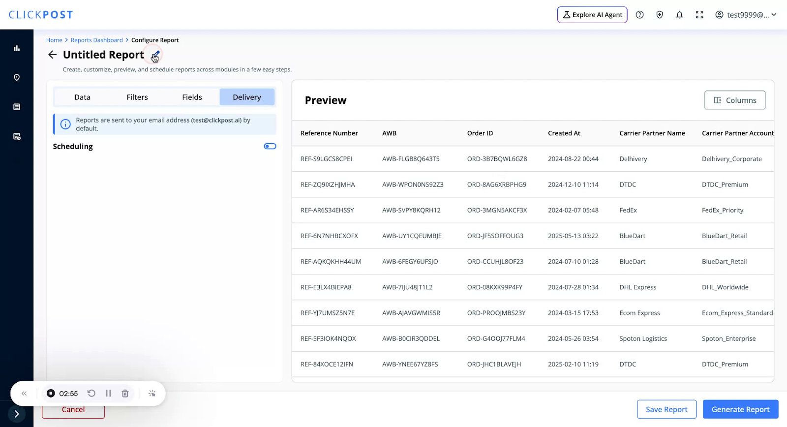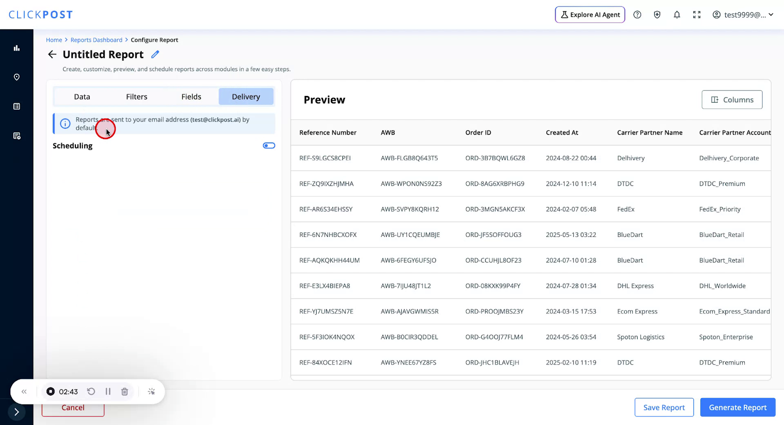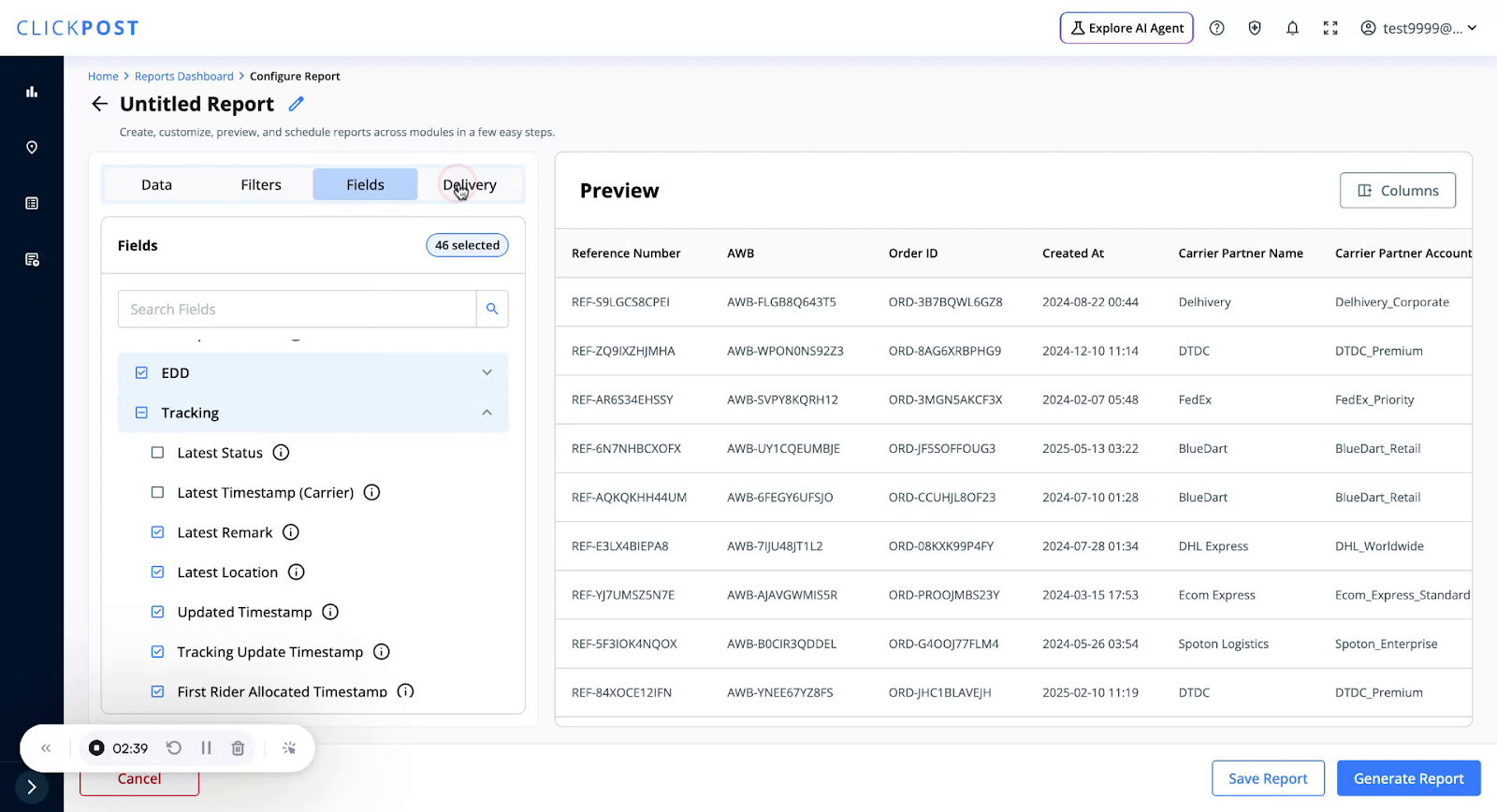 Saving the report allows you to reuse it multiple times and generate it on demand without reconfiguring filters and fields.
