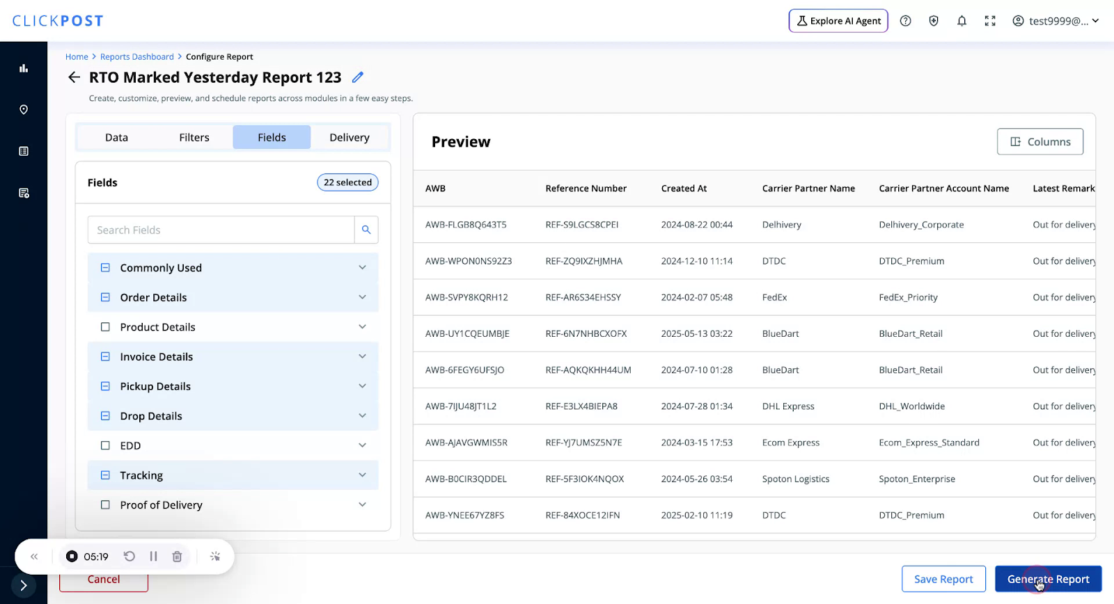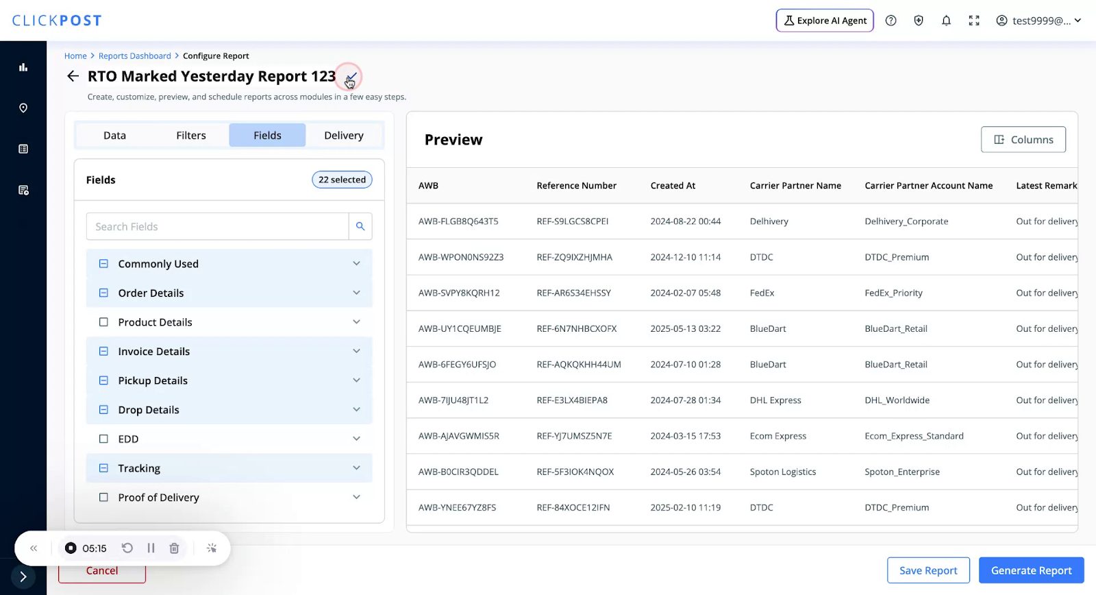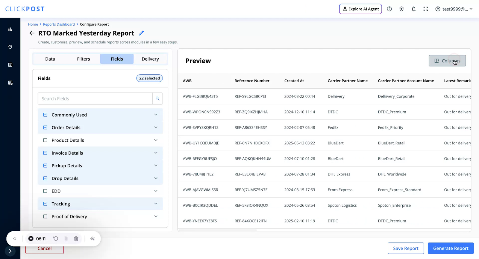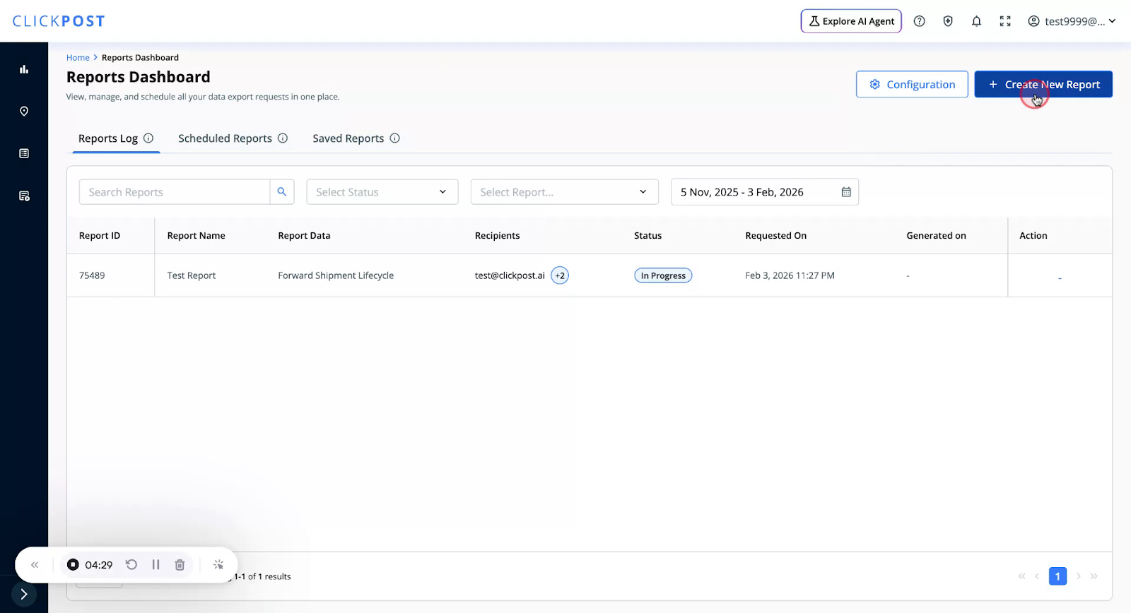 You can download pre-defined templates where filters and fields are already configured for you. To use a Quick Template, click on Create New Report