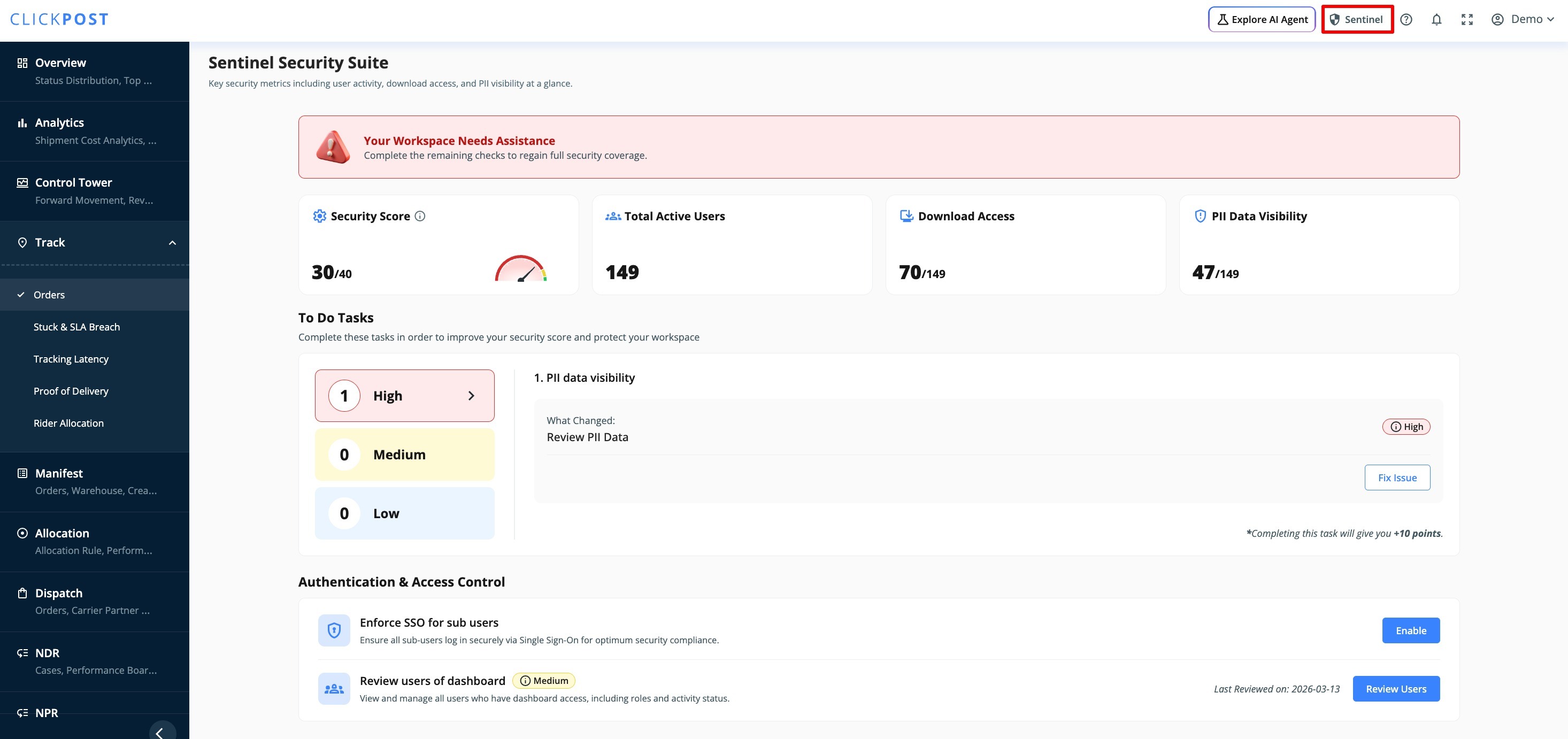 - Navigate to the “Sentinel” option, as shown in the screenshot below.