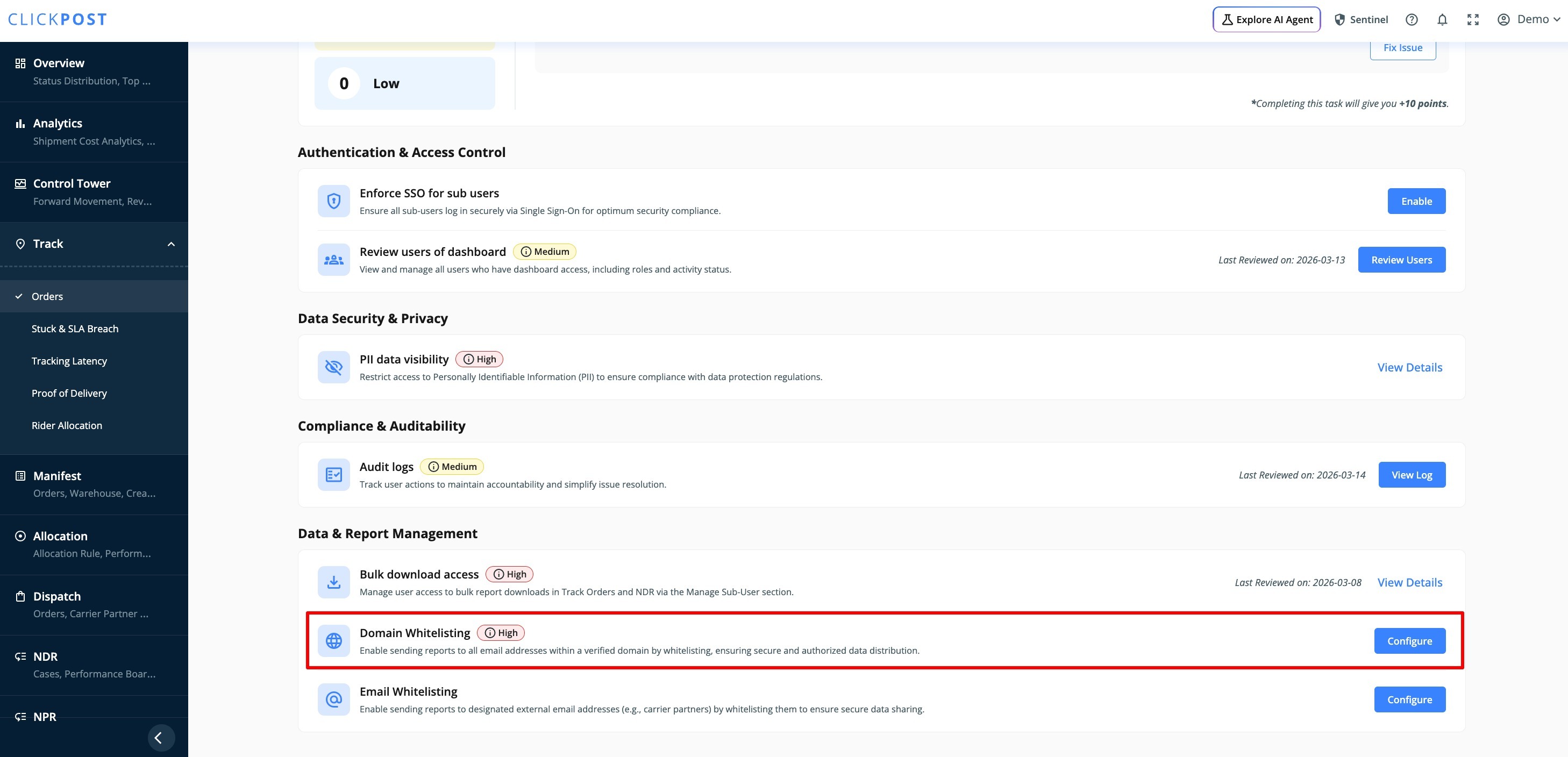 2. Scroll down to the Domain Whitelisting section and click on “Configure.”