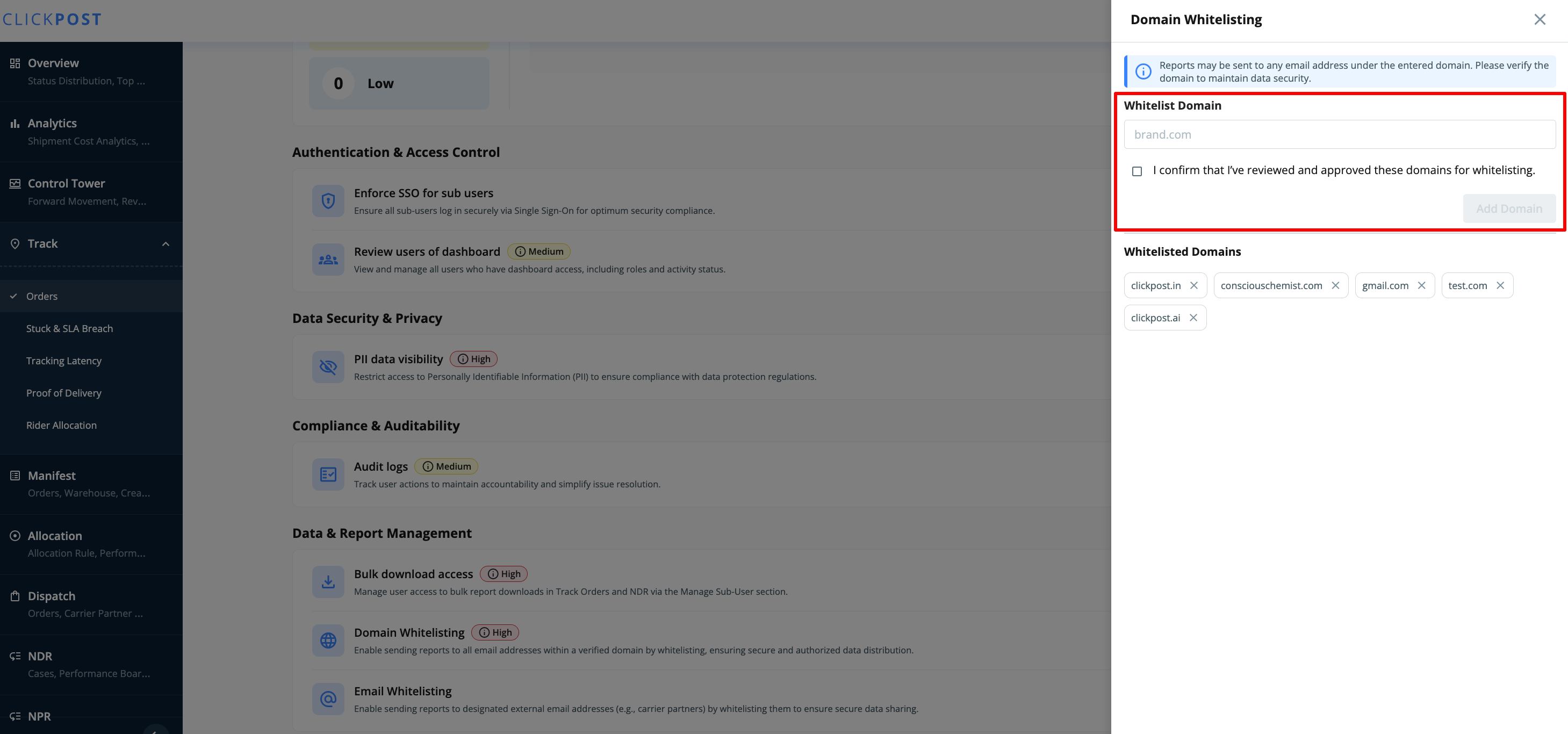 3. Enter the required domain name. Once configured, users associated with the specified domain will be able to log in to Clickpost.